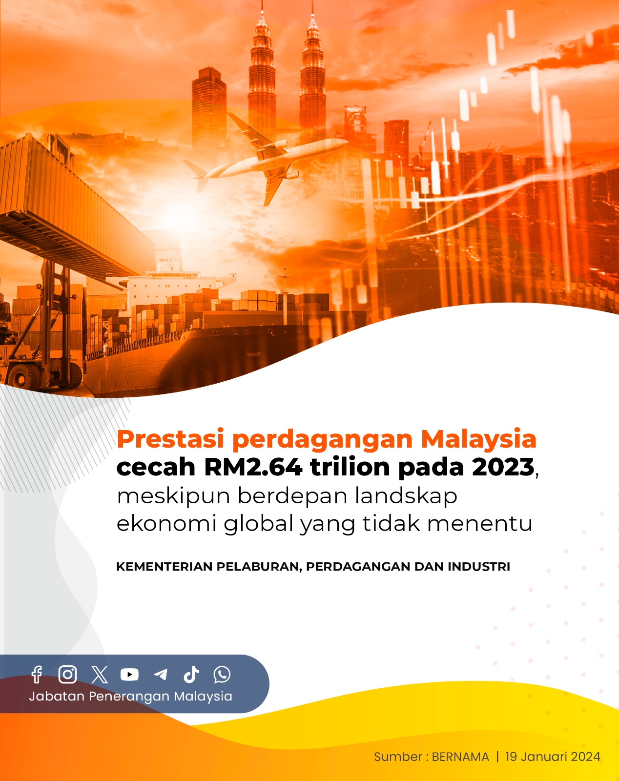PRESTASI PERDAGANGAN MALAYSIA CECAH RM2.64 TRILION PADA 2023, MESKIPUN BERDEPAN LANDSKAP EKONOMI GOLBAL YANG TIDAK MENENTU