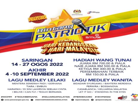 Salam Malaysia Madani, Jabatan Penerangan Malaysia dengan kerjasama Malaysia Smule Community menganjurkan Pertandingan Nyanyian Bintang Patriotik Smule 2023 secara online...