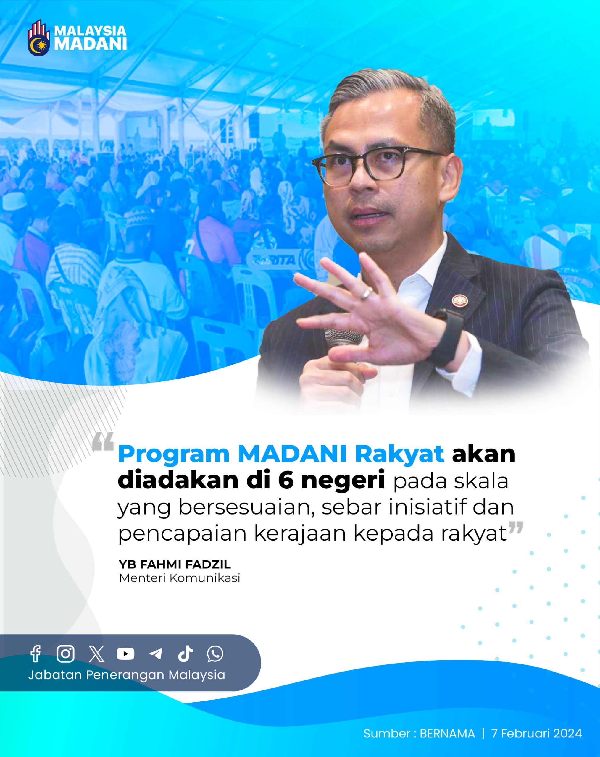 PROGRAM MADANI RAKYAT AKAN DIADAKAN DI 6 NEGERI PADA SKALA YANG BERSESUAIN, SEBAR INISIATIF DAN PENCAPAIAN KERAJAAN KEPADA RAKYAT