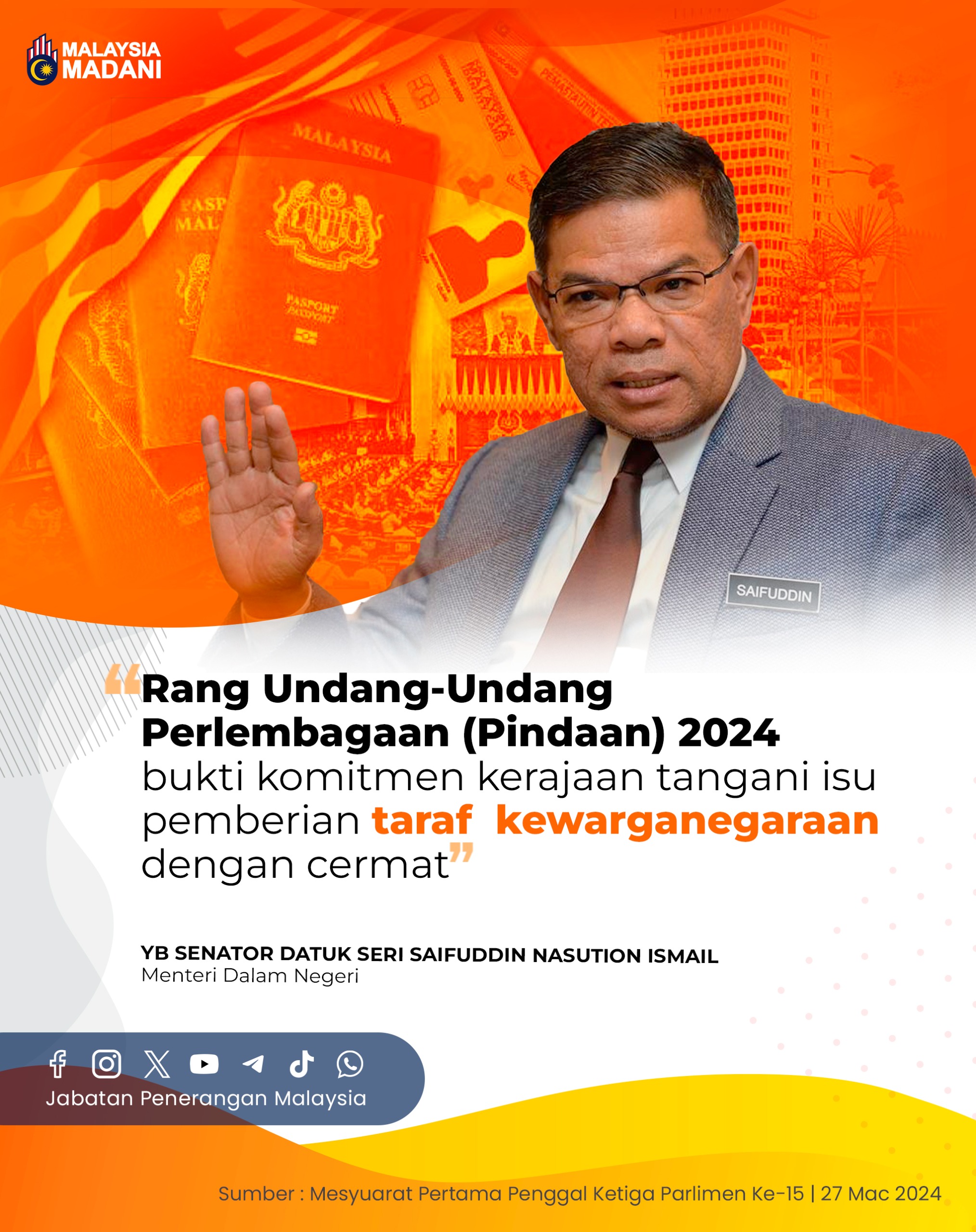 RANG UNDANG-UNDANG PERLEMBAGAAN (PINDAAN) 2024 BUKTI KOMITMEN KERAJAAN TANGANI ISU PEMBERIAN TARAF KEWARGANEGARAAN DENGAN CERMAT