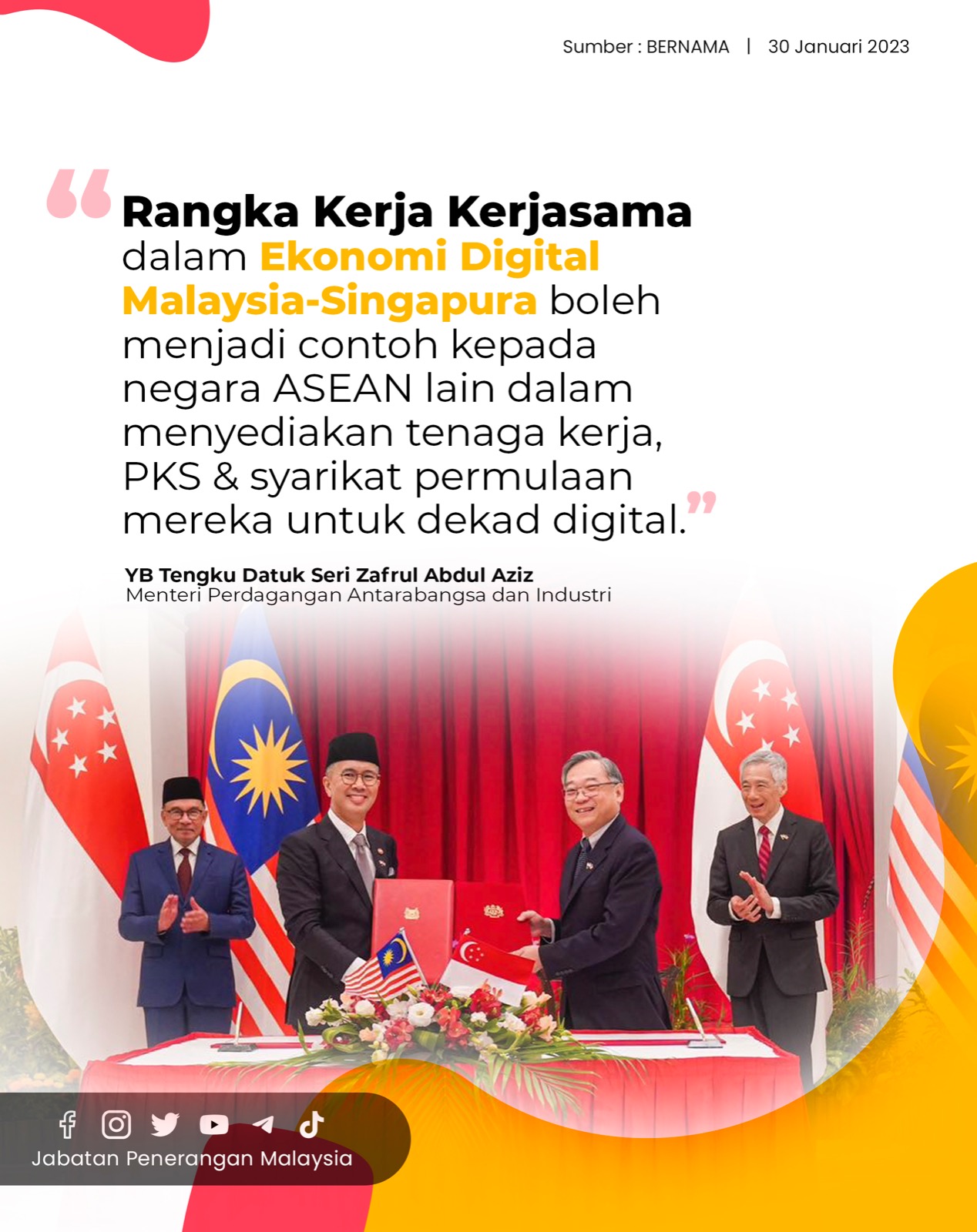 RANGKA KERJA KERJASAMA DALAM EKONOMI DIGITAL MALAYSIA SINGAPURA BOLEH MENJADI CONTOH KEPADA NEGARA ASEAN LAIN DALAM MENYEDIAKAN TENAGA KERJA PKS & SYARIKAT PERMULAAN MEREKA UNTUK DEKAD DIGITAL