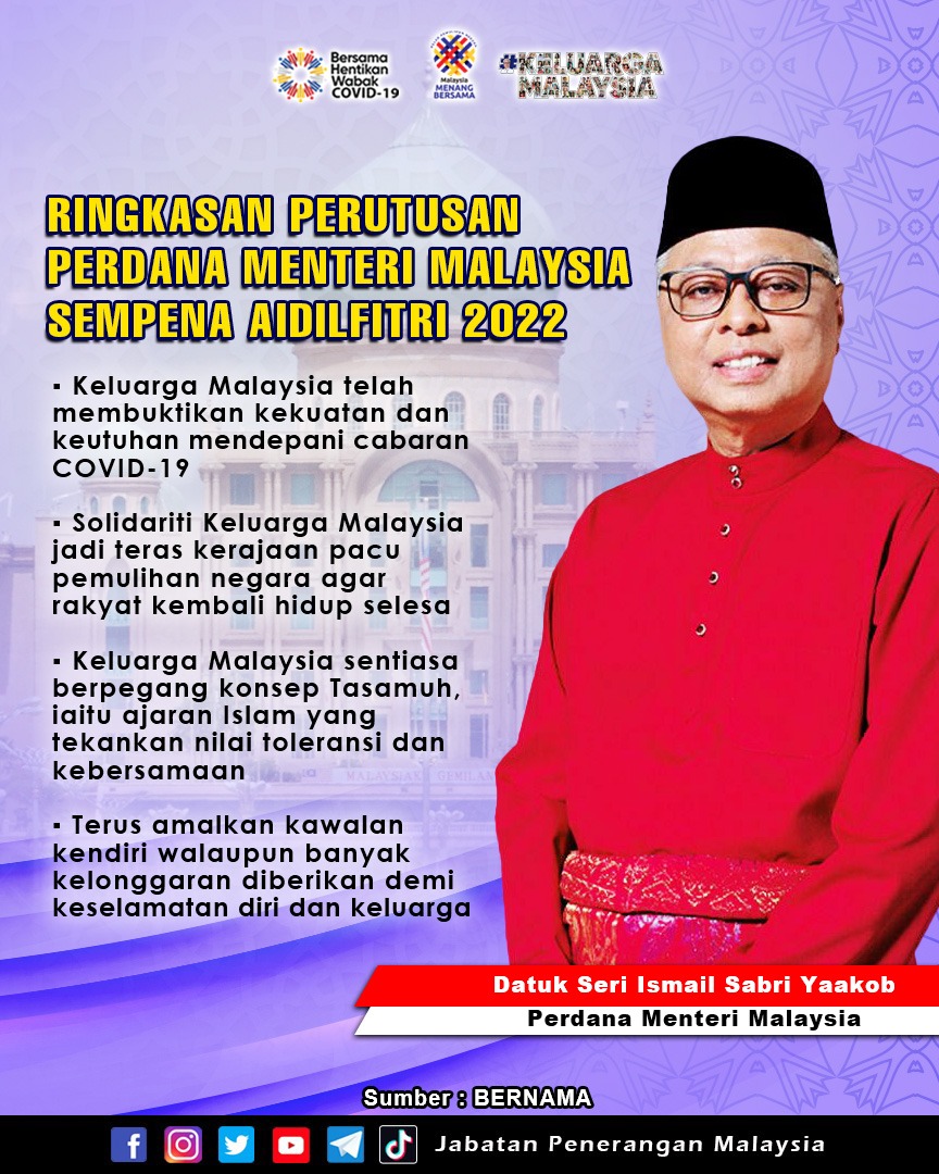 RINGKASAN PERUTUSAN PERDANA MENTERI MALAYSIA SEMPENA AIDILFITRI 2022