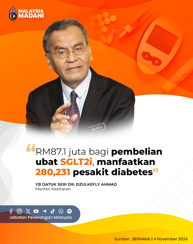 RM87.1 JUTA BAGI PEMBELIAN UBAT SGLT2i, MANFAATKAN 280,231 PESAKIT DIABETES