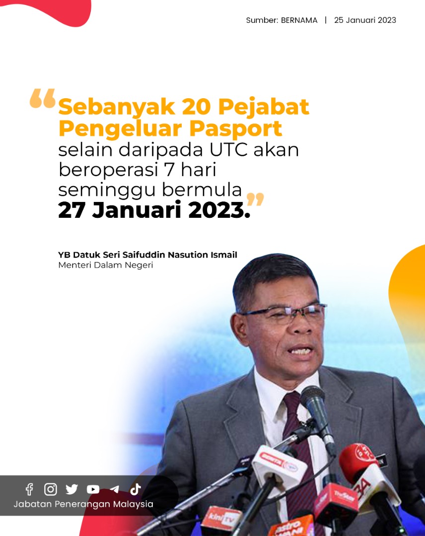 SEBANYAK 20 PEJABAT PENGELUAR PASSPORT SELAIN UTC AKAN BEROPERASI