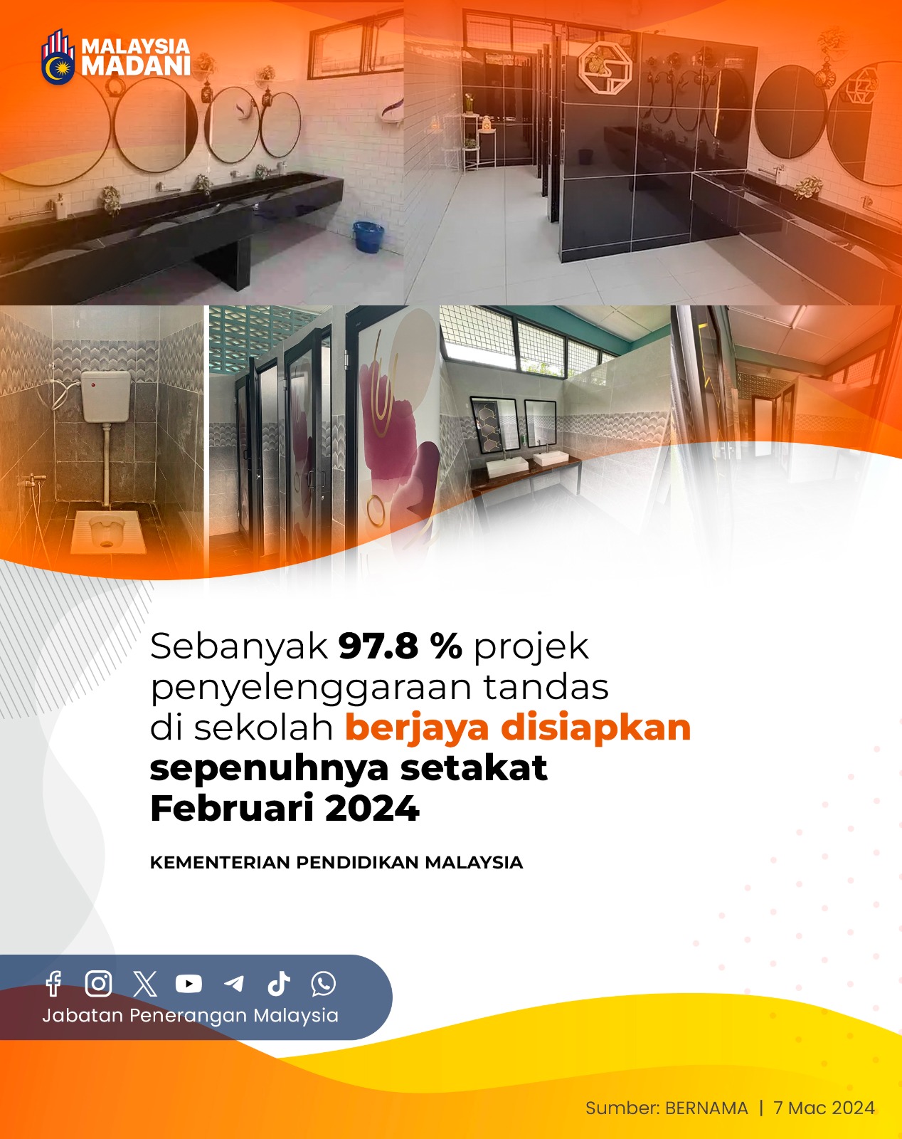 SEBANYAK 97.8% PROJEK PENYELENGGARAAN TANDAS DI SEKOLAH BERJAYA DISIAPKAN SEPENUHNYA SETAKAT FEBRUARI 2024