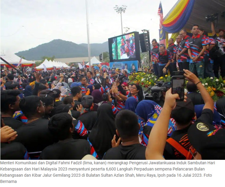 [vc_row][vc_column][vc_empty_space][vc_single_image image=”25036″ img_size=”full” alignment=”center”][vc_column_text]IPOH, 16 JULAI: Menteri Komunikasi dan Digital Fahmi Fadzil menyeru semua pihak supaya mengibarkan Jalur Gemilang bagi menunjukkan semangat cintakan negara, seterusnya memeriahkan Bulan Kebangsaan dan sambutan Hari Kebangsaan serta Hari Malaysia.