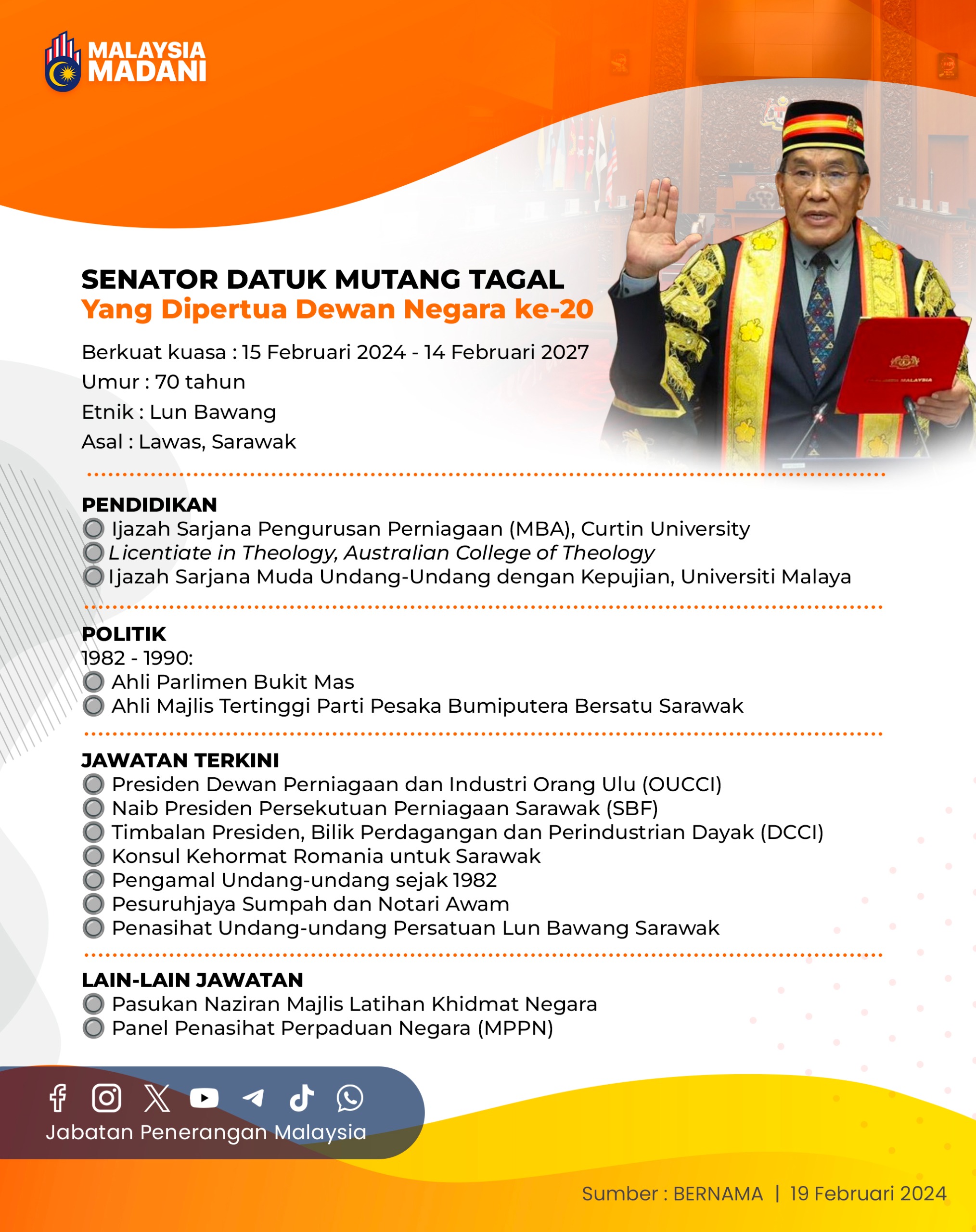 SENATOR DATUK MUTANG TAGAL YANG DIPERTUA DEWAN NEGARA KE-20