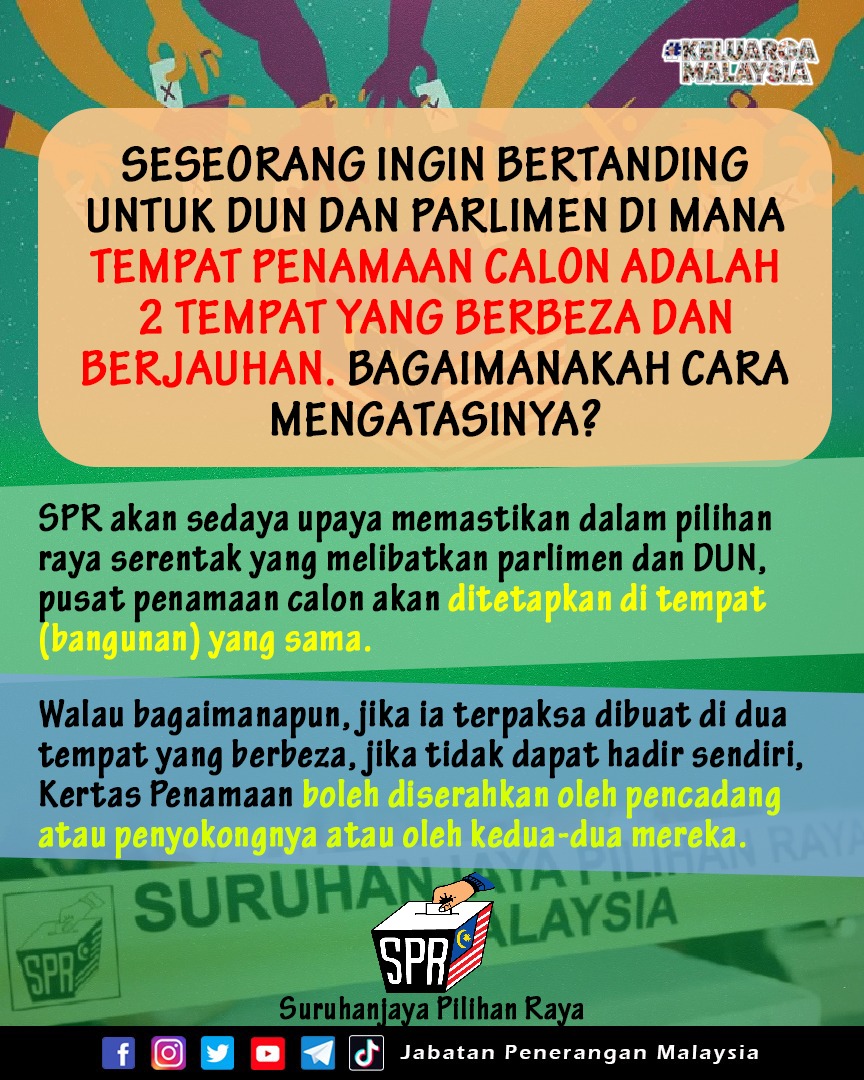 SESEORANG INGIN BERTANDING UNTUK DUN DAN PARLIMEN DI MANA TEMPAT PENAMAAN CALON ADALAH 2 TEMPAT BERBEZA DAN BERJAUHAN