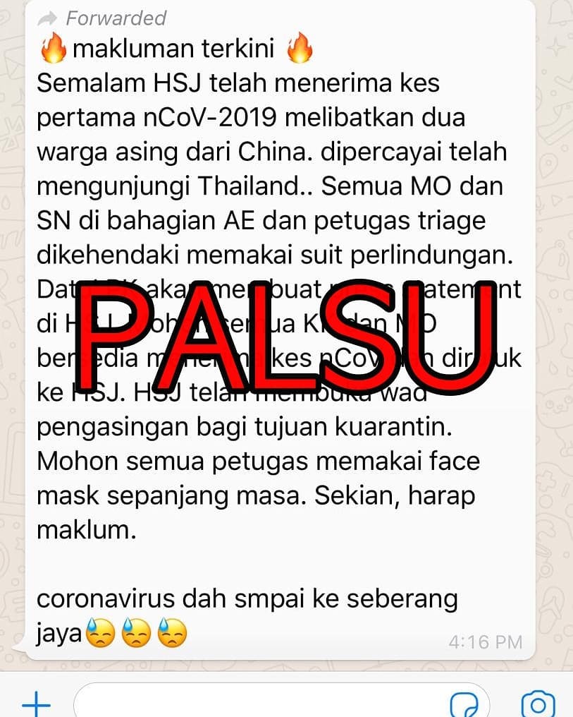 [vc_row][vc_column][vc_empty_space][vc_single_image image=”3118″ img_size=”full” alignment=”center”][vc_column_text]Berita palsu seperti ini tidak memberikan apa-apa manfaat kepada semua. Jadilah pengguna media sosial yang bijak dan matang. Tidak Pasti, Jangan Kongsi!