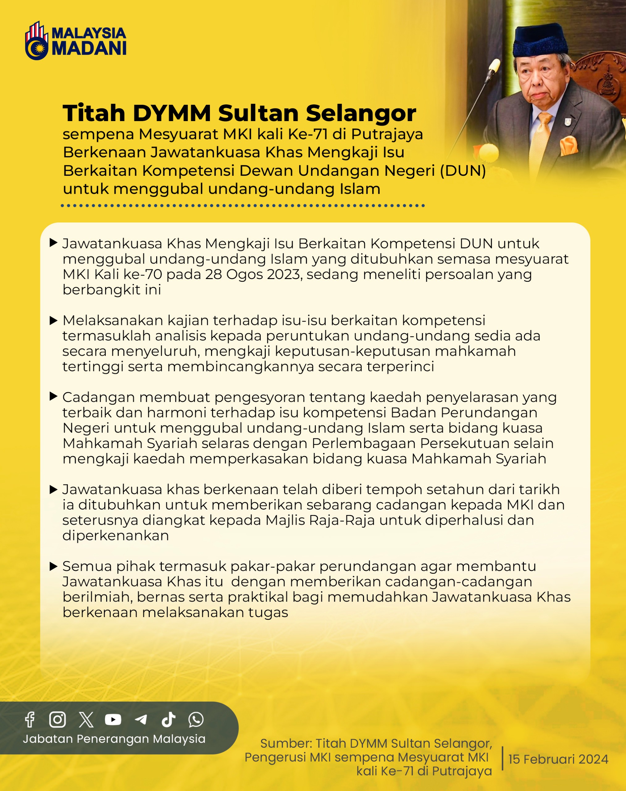 TITAH DYMM SULATAN SELANGOR SEMPENA MESYUARAT MKI KE-71 DI PUTRAJAYA